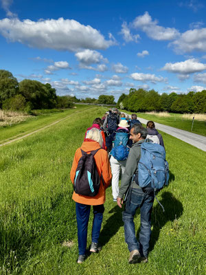 Wir treffen uns üblicherweise am Hauptbahnhof oder beim Pilgerwegweiser vor der Hauptkirche St. Jacobi und fahren gemeinsam zum Ausgangspunkt der Tour. Du kannst aber auch direkt dorthin kommen. Meist treffen wir uns morgens zwischen 8 und 9 Uhr und sind zwischen 17 und 18 Uhr zurück. Die genauen Zeiten richten sich nach der Streckenlänge, der Jahreszeit und den passenden HVV-Verbindungen.