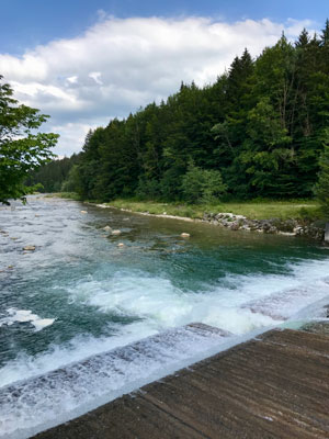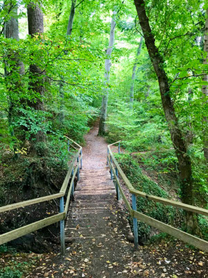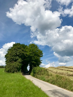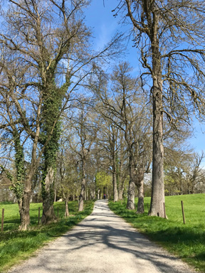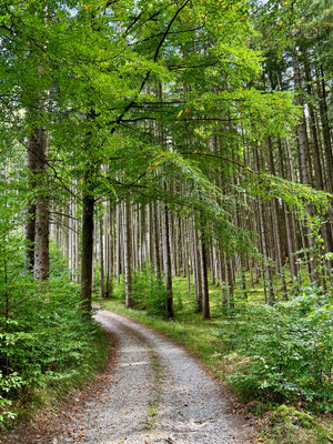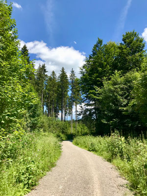 Er führt durch herrliche, oft hügelige Landschaften, vorbei an Feldern, Wiesen, Wäldern, Seen, Flüssen und Bächen.