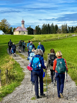 Ausgangspunkt ist der schöne Ort Marktoberdorf, über dessen Altstadt die Schlosskirche St. Martin thront. Am Weg erwarten uns unter anderem die im barocken Stil ausgebaute Kirche St. Nikolaus in Wald, die idyllischen Auen der Wertach, das geschichtsträchtige Kempten mit seiner schönen Altstadt, der aussichtsreiche Sonneckgrat, die durch ihre farbenprächtigen Ausmalungen beeindruckende neugotische Kirche St. Pelagius in Weitnau und zahlreiche weitere sehenswerte Kirchen und Kapellen, der Fünf-Länder-Blick von der Scheidegg und die wunderschöne Lindauer Altstadt.